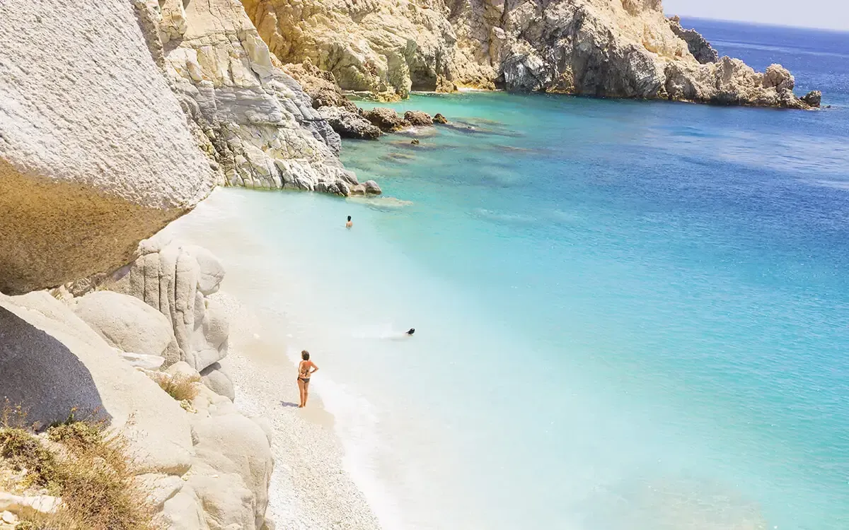 Nach einem morgendlichen Bad in den kalten und kristallklaren Gewässern am Wasserfall von Fonissas in Mulopotamos fühlst du dich wie neugeboren und bist bereit für alle Abenteuer des Tages. Kaltes Wasser am Morgen ist eher nichts für dich? Dann nichts wie hin zu den traumhaften Stränden Kythiras.